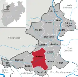 Borken (German pronunciation: [ˈbɔʁkn̩] ⓘ; Westphalian: Buorken) is a town and the capital of the district of the same name, in North Rhine-Westphalia, Germany.