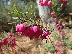 Boronia deanei, commonly known as Deane's boronia,[2] is a plant in the citrus family Rutaceae and is endemic to the central and southern highlands of New South Wales. It is an erect shrub with crowded, strongly aromatic leaves and white to bright pink flowers in late winter and spring.