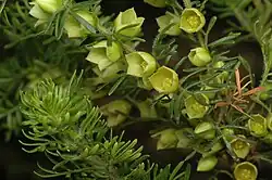 Boronia tetrandra, commonly known as yellow boronia,[2] is a plant in the citrus family, Rutaceae and is endemic to Western Australia. It is a spreading or erect shrub with hairy stems, pinnate leaves and greenish cream to yellow or reddish brown, cup-shaped, four-petalled flowers.