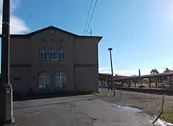After the Second World War, Großbothen lost importance because of a break in the line to Wurzen and the dismantling of the Borna–Großbothen line.[20] Signal box 2 was closed by 1980; the western end on the Mulde Valley Railway side received electrically actuated, remotely controlled points and colour light signals; these were connected to signal box 1. Shortly after 1990, the middle of the three railway platforms of the Mulden Valley Railway was closed. Traffic on the Colditz–Großbothen section of the Mulden Valley Railway was discontinued on 27 May 2000. In the rationalisation of the facilities, in preparation for the construction of the electronic interlocking system, the connections between the Mulde Valley Railway and the Borsdorf–Coswig railway at the eastern end were omitted. Since 2010, an Alcatel electronic signal box has been put into operation; it is controlled from Geithain station. The central platform of the three platforms on the Borsdorf–Coswig side was retained, but the points were locked, which made it no longer usable. Since 2014, there are again three platform faces on the Borsdorf–Coswig line side of the station and one of the tracks leased to the DRE on the Mulde Valley Railway is accessible by train to and from Grimma ob station. Signal box 4 was not included in the electronic signalling and was retained.