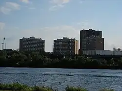 West Campus is an area in the westernmost part of Boston University's Charles River campus in Boston, Massachusetts. The area taken up by West Campus takes up most of the footprint of the former grandstand of Braves Field, whose right field pavilion grandstand is currently used as the primary grandstand for Nickerson Field. The former footprint of the stadium also includes the Case Physical Education Center, whose buildings and adjacent tennis courts take up most of the left field pavilion grandstand area.