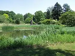 Today the garden contains about 5,000 species, with special collections of Rubus (45 species) and indigenous plants of central Europe. It is organized into two major areas as follows. The geobotanical area contains an alpine garden, arboretum, meadows, steppes, marsh, and pond, as well as collections of plants from the Canary Islands, Caucasus, East Asia, Mediterranean, and North America. The systematic and ecological collection includes crop plants, endangered species, ornamental plants, roses, and the Neuer Senckenbergischer Arzneipflanzengarten (New Senckenberg Medicinal Plant Garden, 1200 m2).