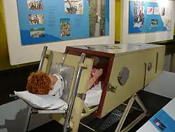 - ^ Woollam, C. H. (1976). "The development of apparatus for intermittent negative pressure respiration. (2) 1919-1976, with special reference to the development and uses of cuirass respirators". Anaesthesia. 31 (5): 666–685. doi:10.1111/j.1365-2044.1976.tb11849.x. PMID 779520.