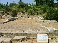 The Old Bouleuterion was built on the west side of the Agora below the Agoraios Kolonos around 500 BC. It was almost square and included an oblong antechamber and a main council chamber, a large rectangular room with wooden benches arranged in rows along the walls.[3] The roof was supported by five columns. It is now better known as the Metroon ("House of the Mother") since it was repurposed as her temple after the construction of the New Bouleuterion.