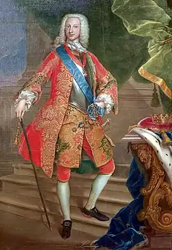 Initially, Elisabeth Farnese aimed to secure for her sons—Charles, followed by Philip and Luis—the Polish throne, the Two Sicilies, Flanders, and the Duchy of Mantua, merging the latter with Charles's central Italian holdings. Philip V sought to restore a Spanish empire encompassing territories lost in 1713. France's chief minister, Cardinal Fleury, balanced Spanish ambitions with the Treaty of Turin (1733), signed 26 September with Charles Emmanuel III, assigning Milan to Sardinia and the Two Sicilies, including the State of the Presidi, to Charles, without requiring Sardinian military aid.[13] Spain refused, demanding that Franco-Sardinian forces join Charles in conquering all Austrian Italian territories—except Milan—for his immediate rule.[14]