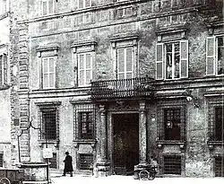 The definitive Perugian consecration of the marquises came in 1780, when the Marquis Uguccione III, through the mediation of Cardinal Giovanni Ottavio I Bufalini,[27][28] bought a prestigious building that belonged to the Eugeni family, located in the center of town on Piazza del Giglio (now Piazza Piccinino). He made it his main residence after a long series of restoration and expansion works, which continued for at least 13 years, from 1781 to 1794.