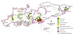 Box–ironbark forest is found on rocky, often auriferous (gold-bearing), soils, in flat and undulating landscapes at altitudes of 150–600 m above sea level, and with an average annual rainfall of 500–800 mm. About 40% of the area formerly supporting the ecosystem in Victoria is public land with less than 20% protected in conservation reserves. About 55% has been permanently cleared for agriculture, mining and urban development. Remaining forest has been fragmented.[1]