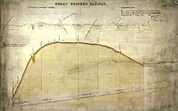 During the 1830s, Isambard Kingdom Brunel developed a plan for a railway running east–west between London and Bristol.[5] The Great Western Main Line would maintain either level ground or gentle gradients of no greater than 1 in 1000 along most of its route. Between Swindon and Bath, at the highest point of the line, a tunnel was proposed through Box Hill, outside Corsham.[5]