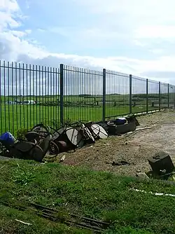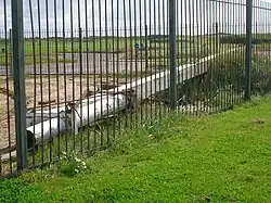 The side facing the sea with the 'hooded' light housings and part of the old 'black balls' mast lying on the ground.