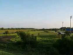 The wetland behind the football stadium and the levee.