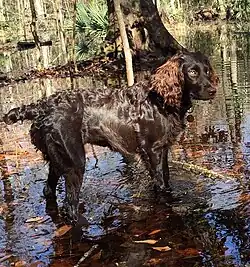 The Boykin Spaniel is a medium-sized breed of dog, a Spaniel bred for hunting wild turkeys and ducks in the Wateree River Swamp of South Carolina, in the United States. It is the state dog of South Carolina, where it was discovered and further developed by hunters in the early through mid 1900s. September 1 is Boykin Spaniel Day in South Carolina, originally established in 1984.[1]