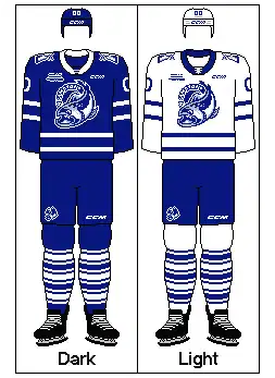 The Steelheads' blue and white uniforms bear a striking resemblance to those of the nearby Toronto Maple Leafs of the National Hockey League (NHL); their home sweaters were white with blue striping and collars, while their road sweaters are blue with white striping and collars. Due to the similarities, the team needed approval from the NHL before using the design. [5]