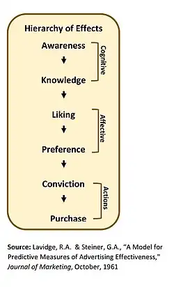 - ^ a b Lavidge, R.J. and Steiner, G.A., "A Model for Predictive Measures of Advertising Effectiveness," Journal of Marketing, October, 1961, pp 59–62