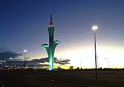 The Brasília Digital TV Tower (Portuguese: Torre de TV Digital de Brasília) is a broadcast tower which made digital television signal available for the whole Federal District and surroundings. It is also known as the “Flor do Cerrado”, the Cerrado flower. Initially planned to open to the public on April 21, 2010, as a celebration of the 50th anniversary of the City of Brasília,[1] the tower was only inaugurated two years later on April 21, 2012.[2]