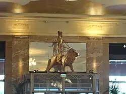 The Brasserie Georges is a restaurant located in the 2nd arrondissement of Lyon. It is the oldest brasserie in the city and one of the largest brasseries in Europe.[1] Its reputation is now international. With a history closely linked to that of Lyon, the brasserie serves typical dishes including the famous sausage of Lyon with pistachios, and recipes from other regions such as sauerkraut, baked Alaska or the seafood on their menu.[2] In 1986 the brasserie served the biggest sauerkraut in the world; it weighed a ton and a half. In 1996, the largest baked Alaska (34 metres) was served. The Brasserie Georges brews its own beer, a tradition from its inception, when water in Lyon was considered of exceptional quality. The restaurant never closes throughout the year. Over 700 guests can be served at each service.[3] On 8 December, during the fête des lumières, over 2,500 meals were served in a service. It is sometimes called the BG or Le Georges.
