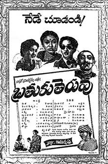 Bratuku Teruvu (transl. Livelihood) is a 1953 Telugu-language drama film, produced by Kovelamudi Bhaskar Rao under the Bhaskar Productions banner and directed by P. S. Ramakrishna Rao. It stars Akkineni Nageswara Rao and Savitri, with music composed by Ghantasala.[1] The film was also dubbed in Tamil as Bale Raman (1956), remade in Kannada as Badukuva Daari (1966), in Hindi as Jeene Ki Raah (1969)[2] and later in Tamil as Naan Yen Pirandhen (1972).[3]
