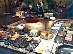 The most typical dishes of Rio Grande do Sul cuisine are churrasco, chimarrão, arroz carreteiro, fried polenta, galeto, cuca, and sagu, among others.[16][17] In the region there is a large consumption of wine, grape juice and white grape juice due to the south being the largest grape producer in the country, and artisanal cheeses and salamis.[18][19] In the region, fig, grape and peach jellies and jams are also very common. One of the most famous is chimia. The consumption of vegetables preserved in water, vinegar, sugar, salt and spices, such as beets and cucumbers, is also typical of the Southern Region.[20]