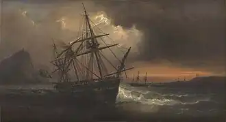 The Argentine government had granted letters of marque to several corsairs, mostly Americans, in order to raid Brazilian sea trade, which severely harmed Brazil's commerce. In order to protect its trade lines, the Brazilian government put many of its ships on patrol missions in the country's coastline. This included the frigate Isabel Maria, which set sail for Santa Catarina alongside a fleet commanded by vice admiral Manuel Antônio Farinha and carrying the emperor on 24 November 1826.[4] By the morning of 29 November, the convoy spotted the Argentine corvette Chacabuco hoisting a French flag. Isabel Maria chased it at full sail, at which point the enemy ship lowered the French flag and hoisted an Argentine one, firing at the Brazilian vessel. After exchanging some fire, the two vessels disengaged at 08:00 due to unfavorable wind conditions.[5]