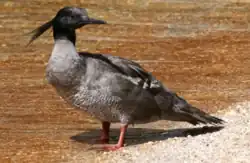 The Brazilian merganser (Mergus octosetaceus) is a South American diving duck in the Mergus genus. It is one of the most threatened waterfowl species in the world, with possibly fewer than 250 birds in the wild and a small number kept in captivity in Brazil[1] and Czechia.[2] It has a long, sharp-edged beak with a great number of tooth-like edges.