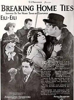 Breaking Home Ties is a 1922 American silent drama film directed by George K. Rolands and Frank N. Seltzer and starring Lee Kohlmar, Rebecca Weintraub and Jane Thomas.[1] It centers on Russian Jewish immigrants in Manhattan's Lower East Side.[2]