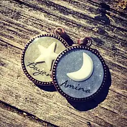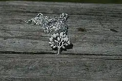 Breast milk jewelry or Breast milk jewellery (Commonwealth English) is jewellery made from pumped or expressed mother's breast milk as a keepsake often worn by the mother. Breast milk keepsakes come in various jewelry types such as rings, lockets, pendants and popular European style beads.[1] Some pendants may be bezel set, locket set, made from only resin, or filled. Filled styles use a preserved breast milk and resin mix to fill holes or openings in jewelry pieces, usually Sterling Silver.[1] Generally, the filled shapes are trees, leaves, or hearts representing love and life.