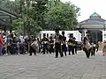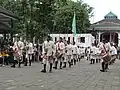 Today, the rest of the Pakualaman bregada function as ceremonial soldiers. There are two active bregadas, Lombok Abang and Plangkir. Bregada Lombok Abang marches in front of the Gunungan, while Plangkir is behind it.[18]