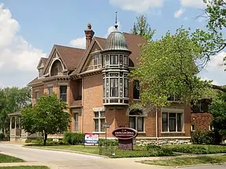 The Bressmer-Baker House is a historic house located at 913 6th Street in Springfield, Illinois. Hiram Walker built the original house in 1853. Two years later, Walker sold the house to merchant John Bressmer, who commissioned architect Thomas Dennis to redesign it. After several changes in ownership, businessman William B. Baker purchased the house in 1889. Baker hired Charles Wesley Shinn to once again redesign the house; Shinn's Queen Anne design has survived through the present day. Shinn added the copper-domed turret which projects from the southeast corner of the house; the turret is the only one of its kind in Springfield. Other significant features of Shinn's design include the irregular plan, the assortment of exterior materials, the varied gables, and the tall chimneys.[2]