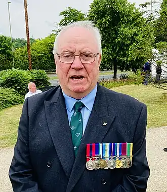 Brian Faulkner DCM (born 11 August 1947) is a former soldier of the Parachute Regiment in the British Army and a veteran of the Falklands War during which he was awarded the Distinguished Conduct Medal (DCM) for bravery.[1][2] This was a field award for other ranks of the British Army and was the oldest British award for gallantry, at that time ranking second only to the Victoria Cross. His DCM was one of only eight awarded during the conflict,[3] five of which were awarded to the Parachute Regiment.[4] Faulkner is a member of The Gallantry Medallists' League of the United Kingdom.[5] He received his medal from Queen Elizabeth II during an investiture ceremony at Buckingham Palace in 1982.[6]