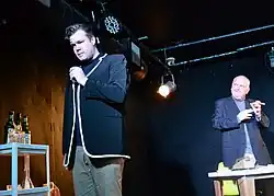 In 2019, Mitchell and Nixon adapted Richard Harris Barham's The Ingoldsby Legends, supposedly written by Thomas Ingoldsby of Tappington Manor. The play has two actors, playing the moralising cleric Barham and the immoral Ingoldsby, who retell four legends: 'The Smuggler's Leap', 'Sir Rupert the Fearless', 'The Hand of Glory' and 'Look at the Clock!'. In December 2019, BBC South East Today broadcast a piece on the show, with interviews with the authors and clips in which Brian Mitchell played Barham and David Mounfield played Ingoldsby.[18] It was first performed at the Rialto, Brighton, on 15 December 2019, with Brian Mitchell as Barham and Ross Gurney-Randall as Ingoldsby.[19] The play was then revived in February 2024, with performances at Presuming Ed's in Brighton and the Sheppey Little Theatre in Kent. Murray Simon now played Barham while Mitchell took over the role of Ingoldsby. In her Broadway Baby review, Susanne Crosby described the show as "fabulously fast-paced, jam-packed full of content and brim full of hilarity...It’s as if someone put The Woman in Black in a blender with Morecambe and Wise and this is the result."[20] Mike Aiken, writing in Brighton Source, said that it was "a wild, accessible, crazy performance."[21]