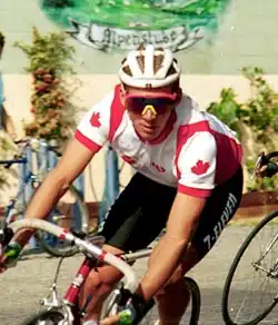 ![]() Walton riding in the Canadian road champion jersey for 7-Eleven in the 1988 Tour de White Rock | |