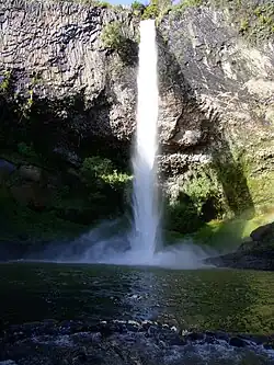 Bridal Veil Falls (officially Wairēinga / Bridal Veil Falls; Māori: Wairēinga) is a plunge waterfall located along the Pakoka River in the Waikato area of New Zealand. The waterfall is 55 m (180 ft) high, and has over time caused the formation of a large pool at the base of the waterfall. The falls are in the 217 ha (540 acres)[1] Wairēinga Scenic Reserve (created in 1884)[2] with tawa-dominated forest.[1]