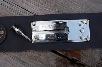 Flatau envisioned mounting the item on a belt or a saddle. A modified hammer screw with a large head that protruded 3/4" from the frame would be installed on the Colt. This screw head would be inserted into the rig and held in place via a strip of spring steel that was attached to the gun belt via rivets. The shooter could rotate the revolver upward to fire without removing it from his belt if needed. These were fabricated by the Bridgeport Gun Implement Company of Bridgeport, Connecticut.[2]