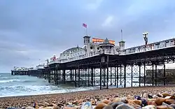 The Brighton Corporation Act 1927 added the settlements of Ovingdean and Rottingdean, as well as western parts of Falmer, Patcham and West Blatchington.[5] These reforms expanded the Brighton the north and west dramatically. Between 1920 and 1950 housing estates were developed in Woodingdean, Moulsecoomb, Bevendean, and Whitehawk increasing the population of the town substantially. As a result, the number of wards had by now increased to 19. The rest of Falmer, Coldean and the parish of Stanmer were added to Brighton by the Brighton Extension Act 1951, completing the northward extension of the town.[7] A final expansion of the town's boundaries was approved in 1968, incorporating reclaimed land from the sea for the Brighton Marina project.