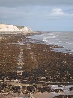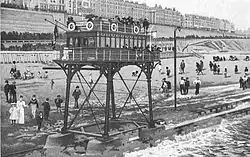 The Brighton and Rottingdean Seashore Electric Railway was a unique coastline railway in Brighton, England, that ran through the shallow coastal waters of the English Channel between 1896 and 1901.[1] It was designed by Magnus Volk to extend his Volk's Electric Railway from its terminus in Paston Place to the village of Rottingdean and avoid difficult terrain. While the railway was popular and carried tens of thousands of passengers, it was ultimately abandoned to make room for new sea defences, and Volk was unable to raise the funds to construct a replacement.