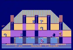Bristles is a non-scrolling platform game by Fernando Herrera for Atari 8-bit computers. It was published in 1983 as the second release from the company he co-founded, First Star Software.[3] It was ported to the Commodore 64,[4] ZX Spectrum,[1] and as an arcade video game using Exidy's Max-A-Flex system.[5] As Peter the Painter, the player uses ladders and elevators move through a cutaway view of a house to paint all the walls.