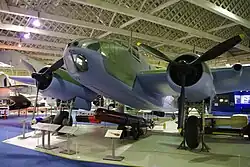 The results of high level bombing tests carried out at Boscombe Down at an altitude of 10,000 ft (3,000 m) and an airspeed of 238 mph (383 km/h) showed that the Beaufort was, in the words of the test pilot, "an exceptionally poor bombing platform, being subject to an excessive and continuous roll, which made determination of drift particularly difficult".[13] After 1941, British Beauforts were fitted with semi-circular plates on the trailing edges of the upper wing behind the engine nacelles to smooth airflow and improve directional stability.[14]