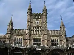 During World War II the station was bombed, which led to the destruction of the wooden spire of the clock tower above the ticket office on 3 January 1941.[13] Gas lighting was replaced by fluorescent electric lights in 1960.[12]