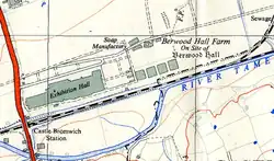 The nearby Castle Bromwich railway station received many important visitors for the BIF, including King George V and Queen Mary in 1928, the Duke of York, Princess Mary and Lord Harewood. They were often entertained afterwards by the Bradfords at Castle Bromwich Hall. In 1956, Queen Elizabeth II & Prince Philip visited the fair at Olympia, whilst Marshal Bulganin, Soviet Premier, and Mr. Khrushchev, Communist Party Leader, flew to Birmingham in order to visit the fair at Castle Bromwich.[3][4][5]
