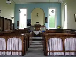 In the early days of Methodism chapels were sometimes built octagonal, largely to avoid conflict with the established Church of England. The first was in Norwich (1757); it was followed by Rotherham (1761), Whitby (1762), Yarm (1763), Heptonstall (1764) and nine others. John Wesley personally approved the design of the octagonal chapels, stating, "It is better for the voice and on many accounts more commodious than any other." He is also said to have added—"there are no corners for the devil to hide in".[89]