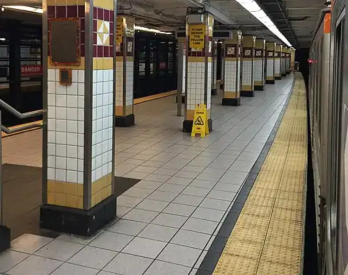 Broad–Girard station is a SEPTA Metro station served by B trains and G trolleys in the Francisville section of North Philadelphia, Pennsylvania. The station receives express service, with B2 and B3 trains stopping at the station. It has four underground tracks and two underground central platforms. On the surface, G trolleys stop along Girard Avenue. The station is located in a very busy commercial strip along Girard Avenue, and also serves the southernmost sections of Temple University. This is the last station where southbound riders can transfer freely between B3 trains and B1 and B2 trains, and the three services commonly meet here and wait for one another. A transfer is available at the station between the B and G.[1]