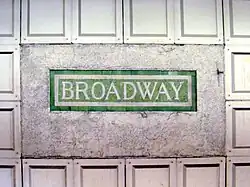 Broadway station was originally built as a three-level station, with six stairways to allow easy transfer between streetcars and subway trains. Some streetcars stopped at a surface-level platform, others in a tunnel segment just below ground, while subway trains used the lowest-level tunnel. Each level consisted of two tracks and an island platform.[10] The street-level platform served streetcars that ran from the Tremont Street Subway to City Point and South Boston via the Pleasant Street Portal and Broadway, on the route 9 streetcar line. Buses replaced the single line to Bay View (which originally used the middle-level tunnel segment) in 1929, but the City Point line lasted until March 1, 1953, before being bustituted.[10]