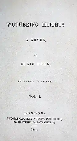 Emily Brontë's Wuthering Heights was published in 1847 under the masculine pseudonym Ellis Bell, by Thomas Cautley Newby, in two companion volumes to that of Anne's (Acton Bell), Agnes Grey. Controversial from the start of its release, its originality, its subject, narrative style and troubled action raised intrigue. Certain critics condemned it,[93] but sales were nevertheless considerable for an unknown author of a novel that defied all conventions.