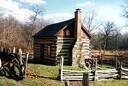 The Oakley Farm, located on the western edge of Brookeville, thrived during the 18th and 19th centuries. Log cabins, dating from the 1820s, were built on the Oakley/Dorsey farm, to house slaves and later free black families.[17][18] The Oakley Cabin is now maintained by the Montgomery County Department of Parks.[19] A number of other 18th and 19th century cabins still exist on private property in the Brookeville area.