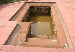 Constructed in its present form in the 20th century, the Grade C Listed well (NGR NY 308505, 567509) is a roughly L-shaped tank with ashlar red sandstone walls entered via stone steps. The iron-rich water was originally taken from a pipe using an iron cup attached to a chain. A drain takes the water to the nearby Raffles or Brow Burn.[14]