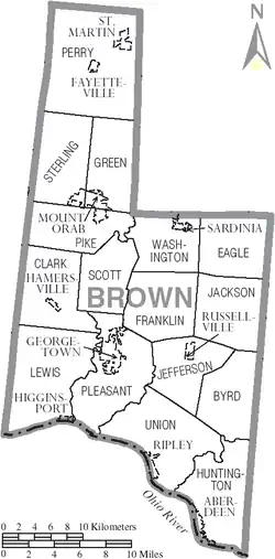 - ^ a b c d e f g h i j k Brown County OH - Google Maps (accessed 9 June 2019)