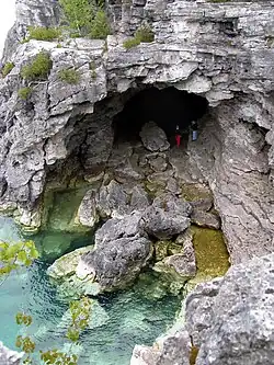 Bruce Peninsula National Park is a national park on the Bruce Peninsula in Ontario, Canada. Located on a part of the Niagara Escarpment, the park comprises 156 square kilometres and is one of the largest protected areas in southern Ontario, forming the core of UNESCO's Niagara Escarpment World Biosphere Reserve.[2] It was established in 1987 to protect the rock formations and shoreline of the Niagara Escarpment.[3] The park offers opportunities for many outdoor activities, including hiking, camping, boating, and bird watching. The park has trails ranging in difficulty from easy to expert, and connects to the Bruce Trail. Bruce Peninsula National Park is known for its crystal clear blue waters, cobblestone beaches, rocky cliffs and karst formations.[3]