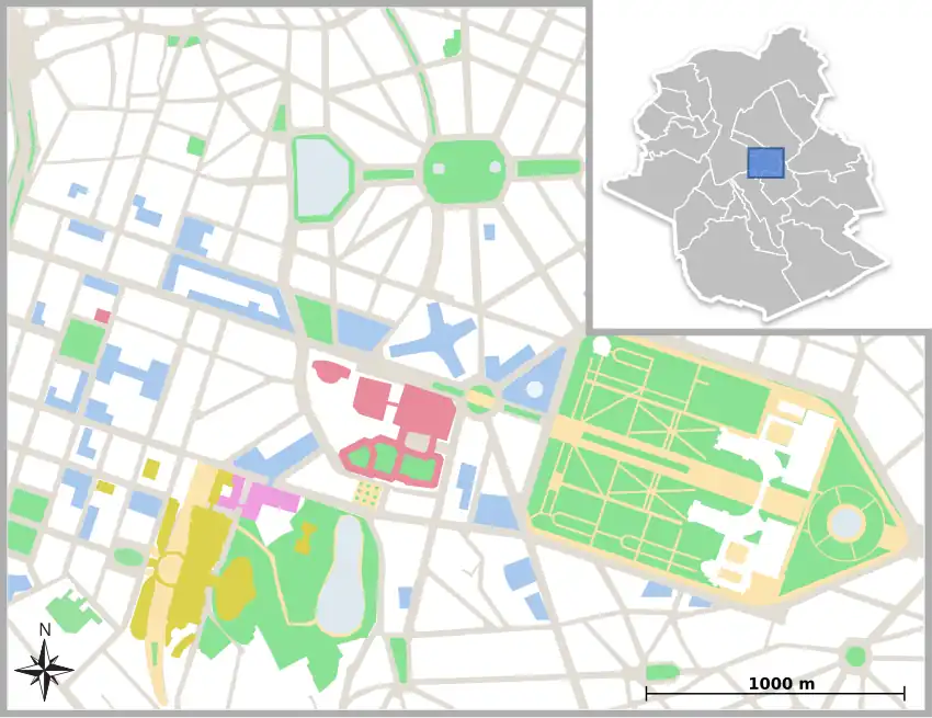 Historical and residential buildings, although still present, have been largely replaced by modern offices. These buildings were built not according to a high quality master plan or government initiative, but according to speculative private sector construction of office space, without which most buildings of the institutions would not have been built.[46] However, due to Brussels's attempts to consolidate its position, there was large government investment in infrastructure in the quarter.[21] Authorities are keen to stress that the previous chaotic development has ended, being replaced by planned architectural competitions[47] and a master plan (see "future" below).[48] The architect Benoit Moritz has argued that the area has been an elite enclave surrounded by poorer districts since the mid-19th century, and that the contrast today is comparable to an Indian city. However, he also said that the city has made progress over the last decade in mixing land uses, bringing in more businesses and residences, and that the institutions are more open to "interacting" with the city.[49]