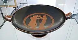 The Brygos Cup of Würzburg (de: Würzburger Brygosschale) is an Attic red-figure kylix from about 480 BC. It was made by the Brygos potter and painted by the man known as the Brygos Painter. It depicts some of the best-known images of ancient Greek pottery.