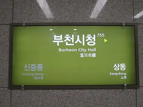 | Hangul | 부천시청역 | ||||