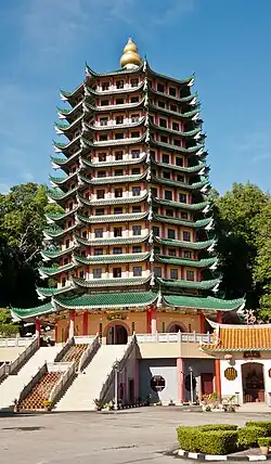 Buddhism is the second largest religion in Malaysia, after Islam, with 18.7% of Malaysia's population being Buddhist,[1][2] although some estimates put that figure at 21.6% when combining estimates of numbers of Buddhists with figures for adherents of Chinese religions which incorporate elements of Buddhism.[3] Buddhism in Malaysia is mainly practised by the ethnic Malaysian Chinese, but there are also Malaysian Siamese, Malaysian Sri Lankans and Burmese in Malaysia that practice Buddhism such as Ananda Krishnan and K. Sri Dhammananda and a sizeable population of Malaysian Indians.